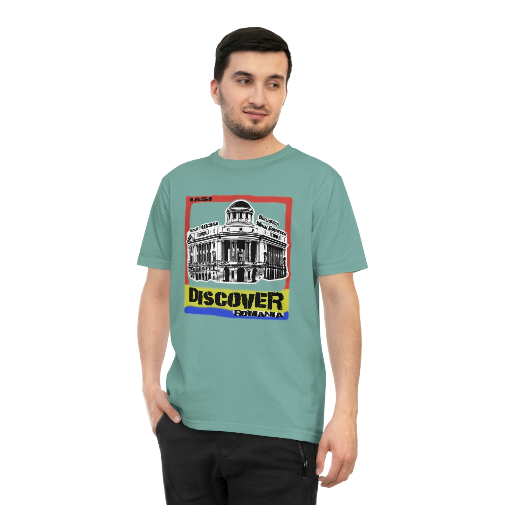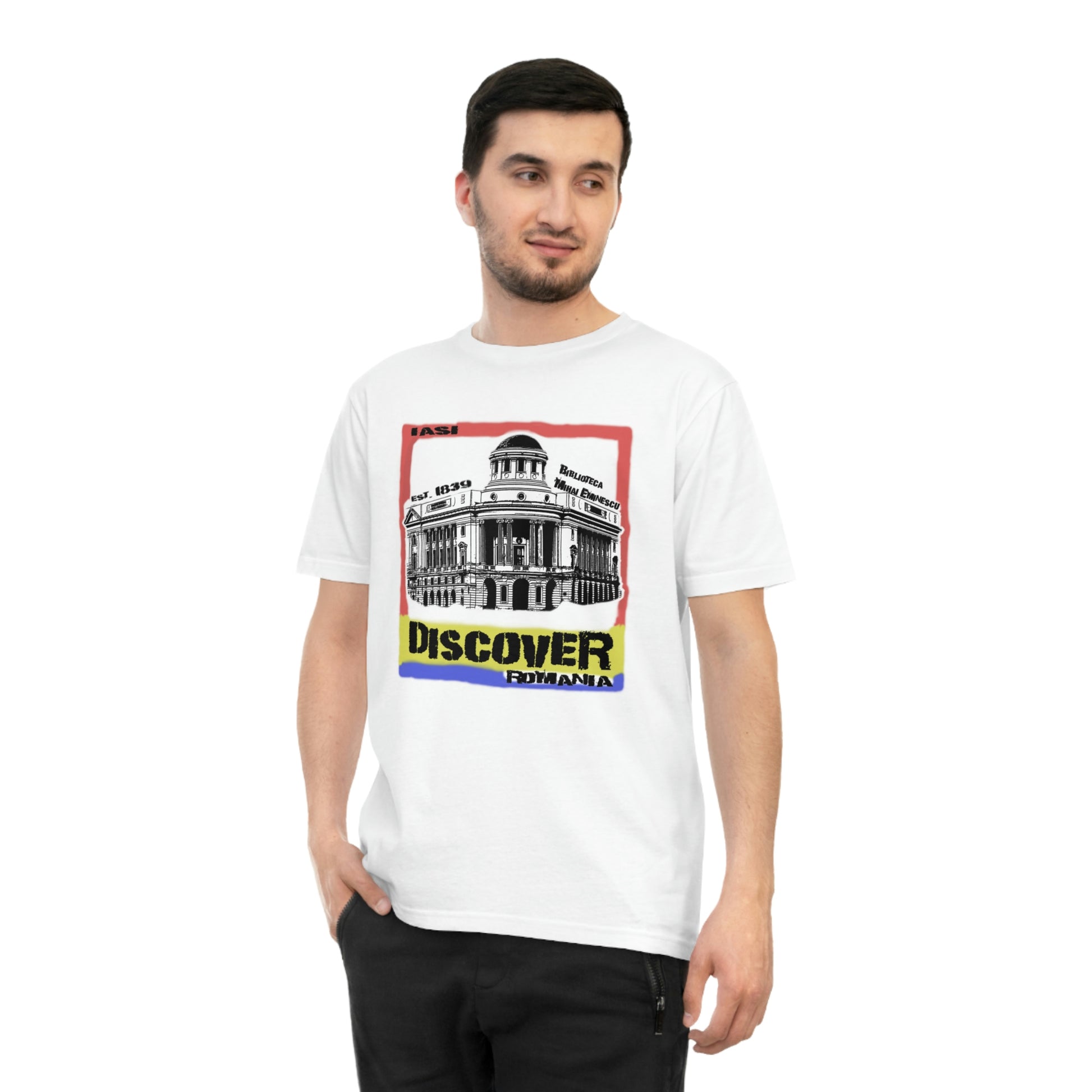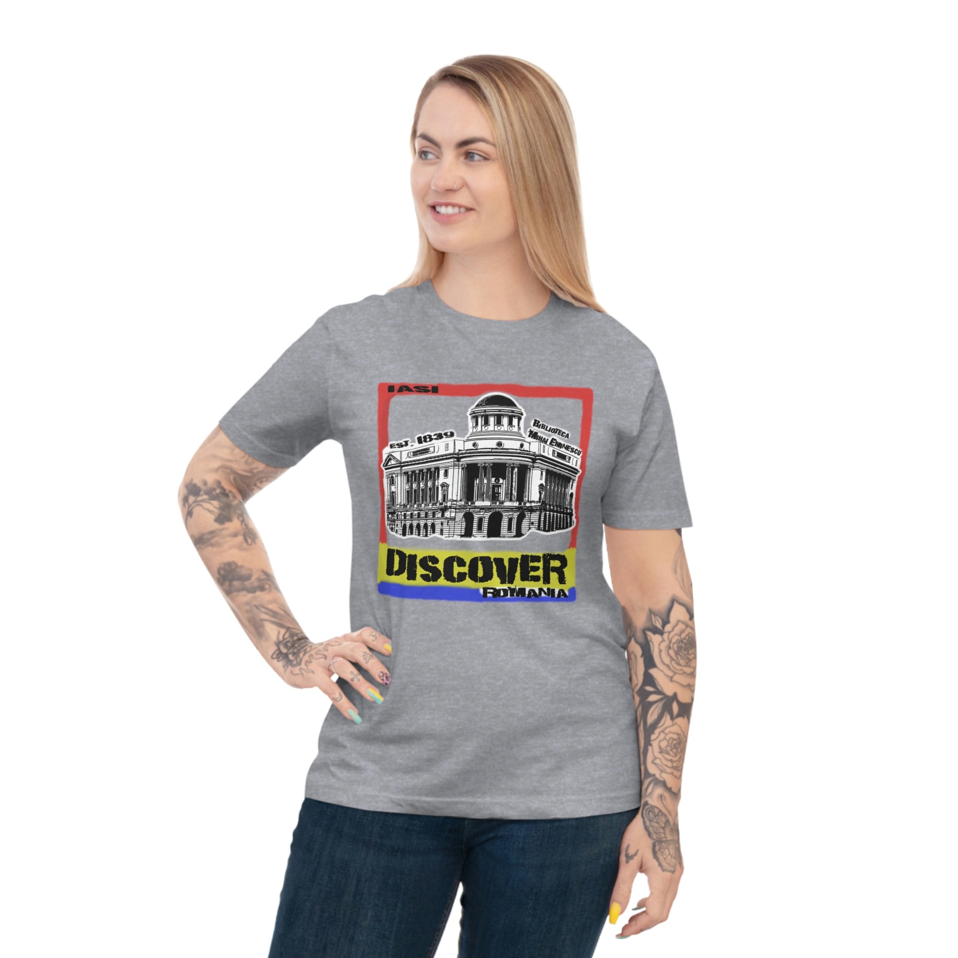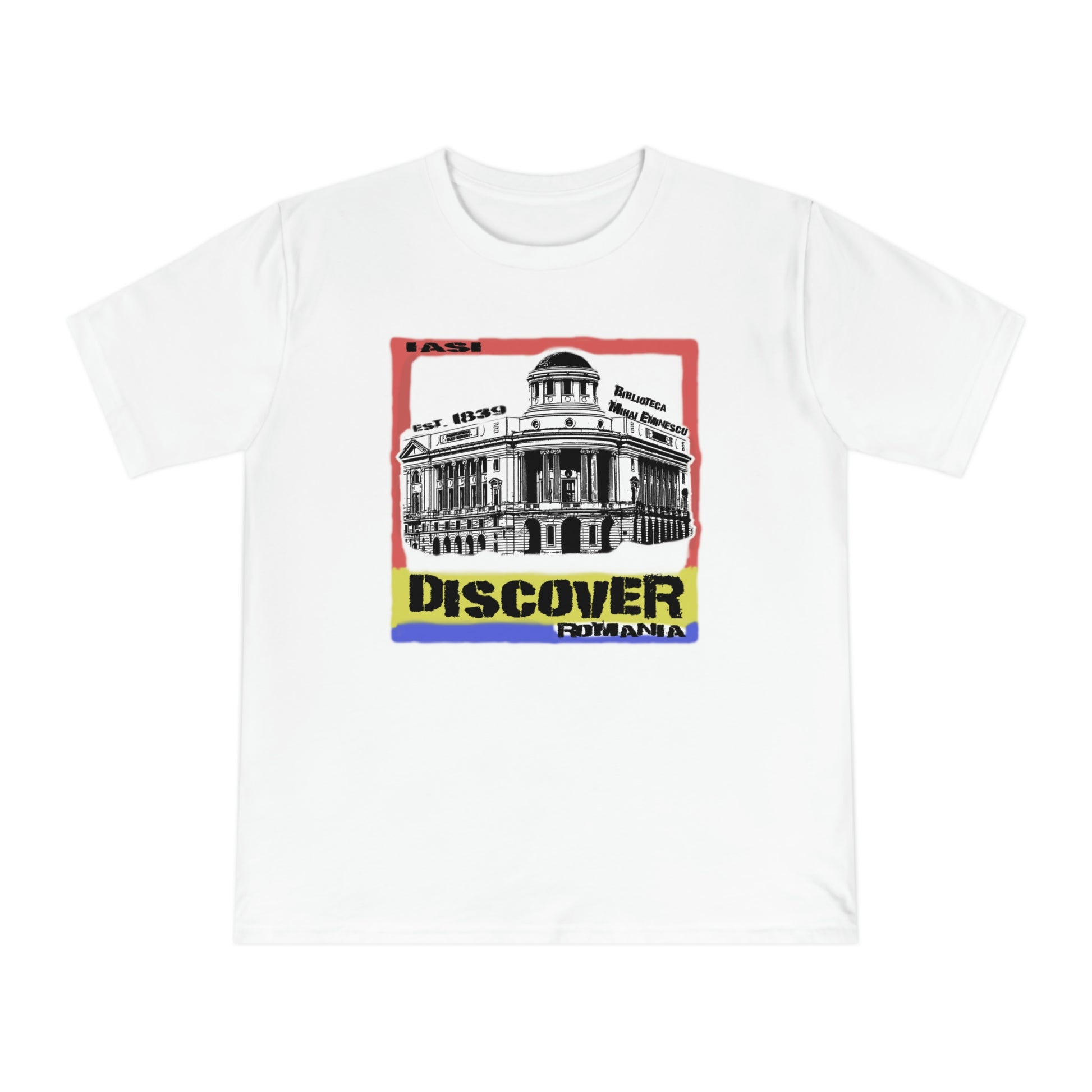 Wir stellen unser „architektonisches Juwel“ vor, das einen einzigartigen Druck aufweist, der von der atemberaubenden Architektur der Mihai-Eminescu-Bibliothek in Iasi inspiriert ist. Dieses klassische Jersey-T-Shirt aus Bio-Baumwolle höchster Qualität ist sowohl bequem als auch stylisch und perfekt für den Alltag.