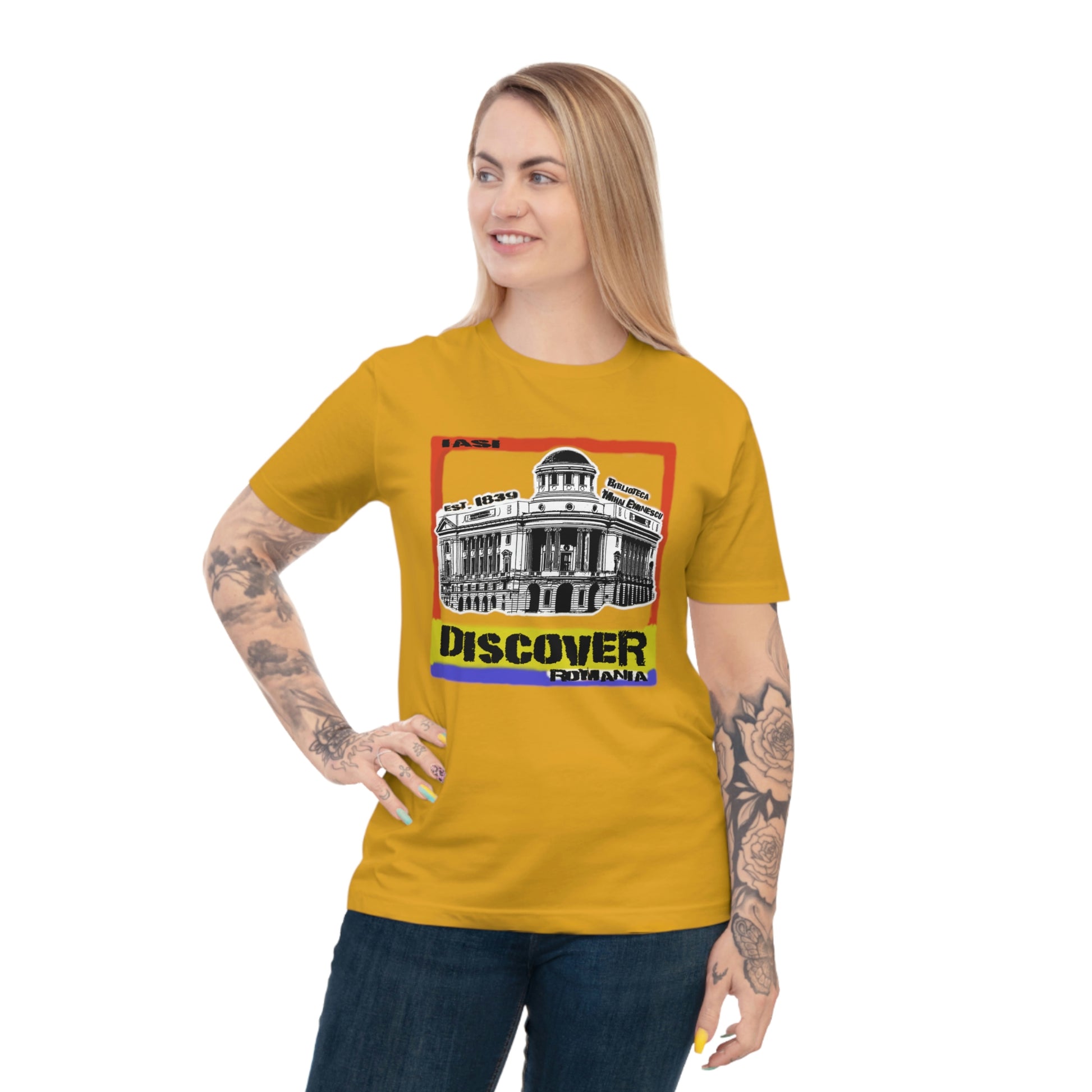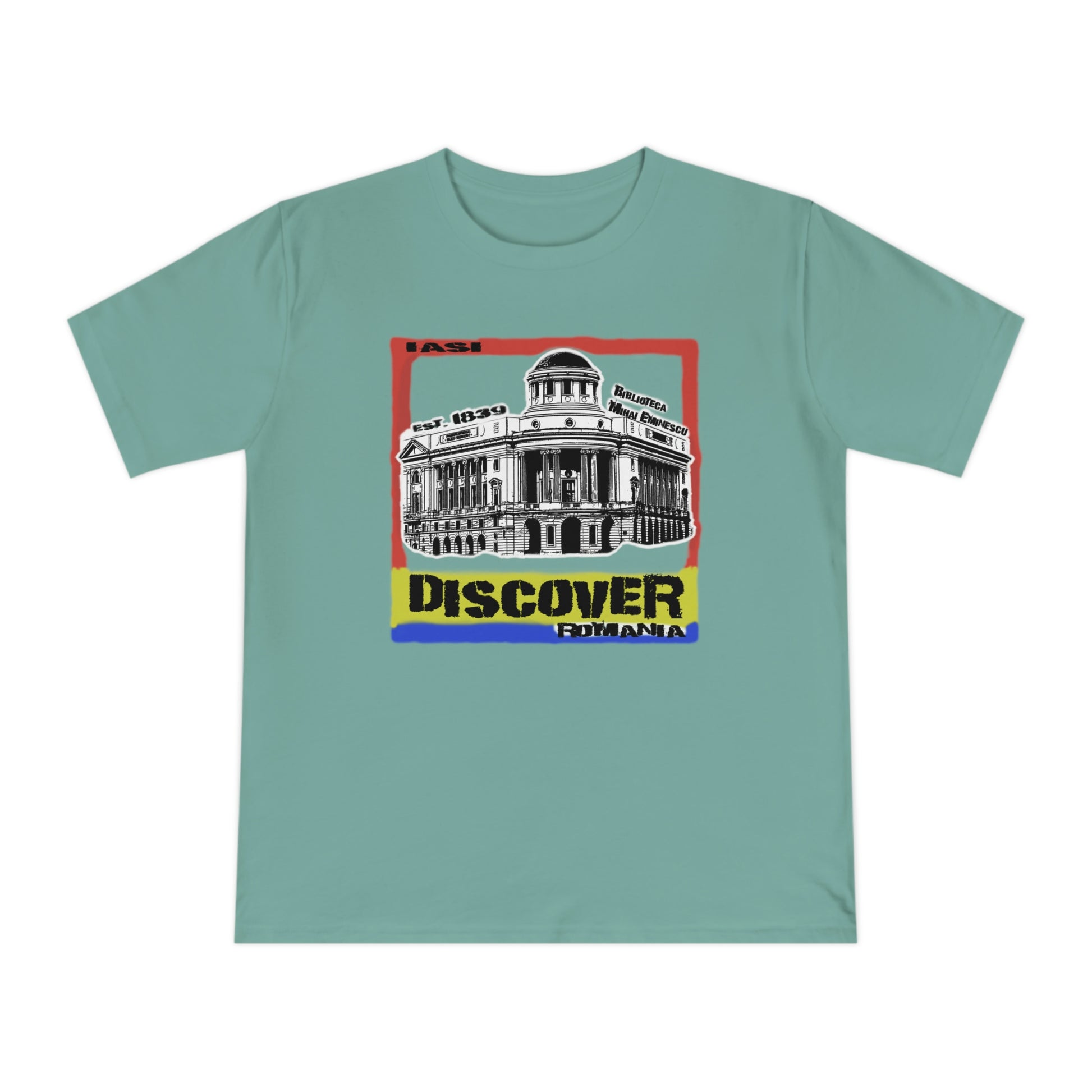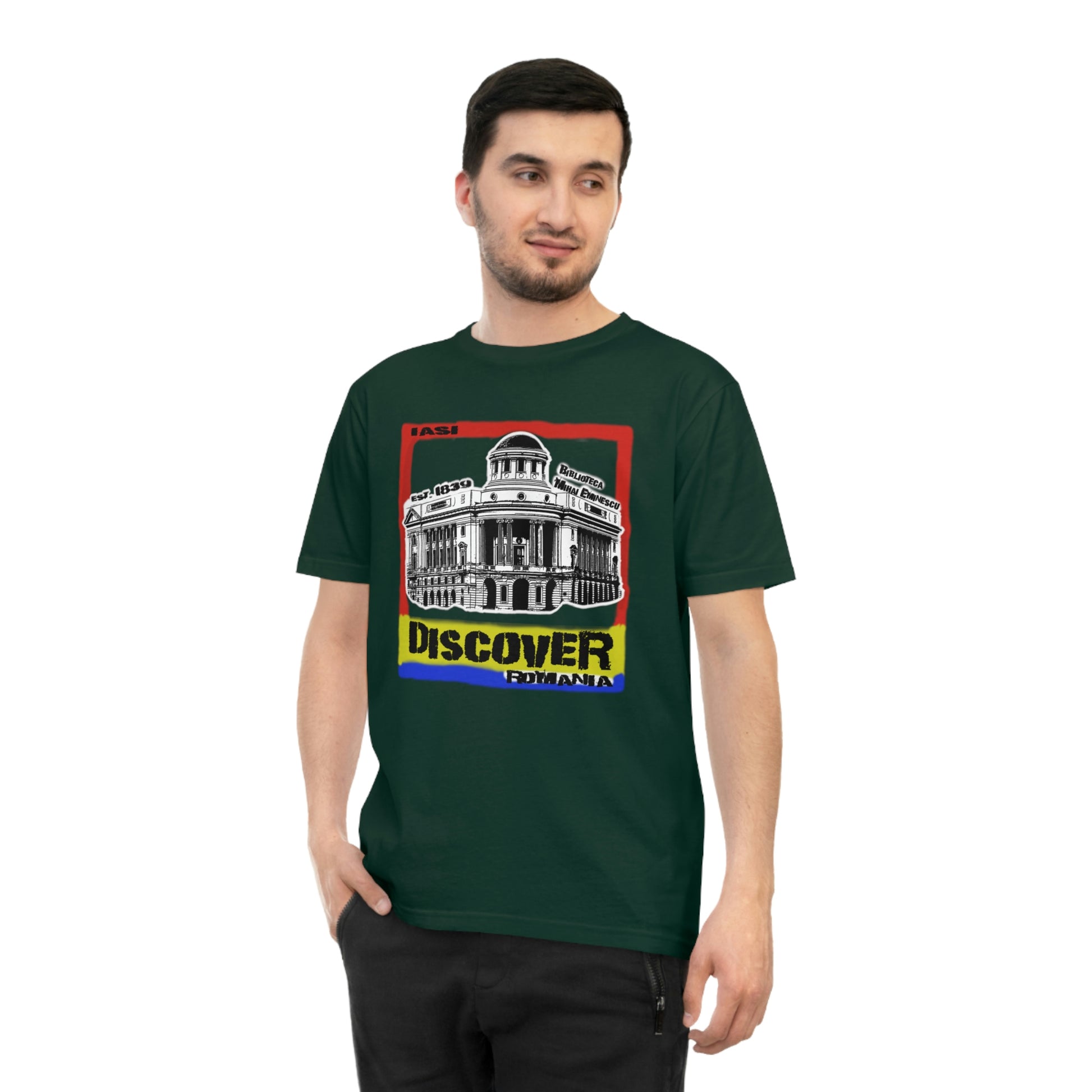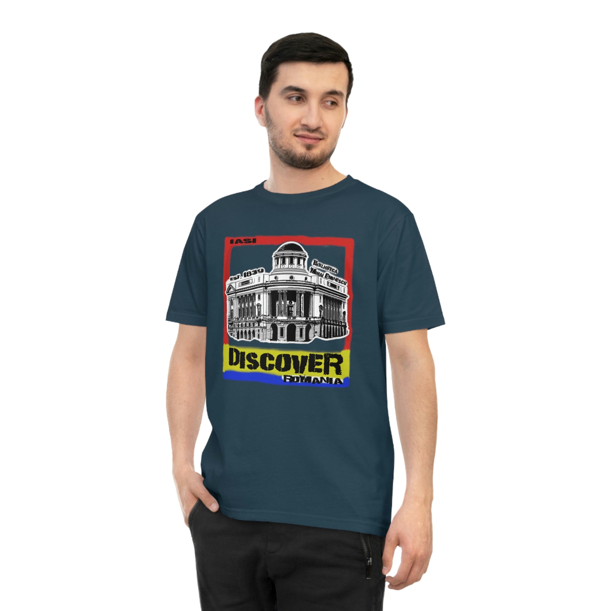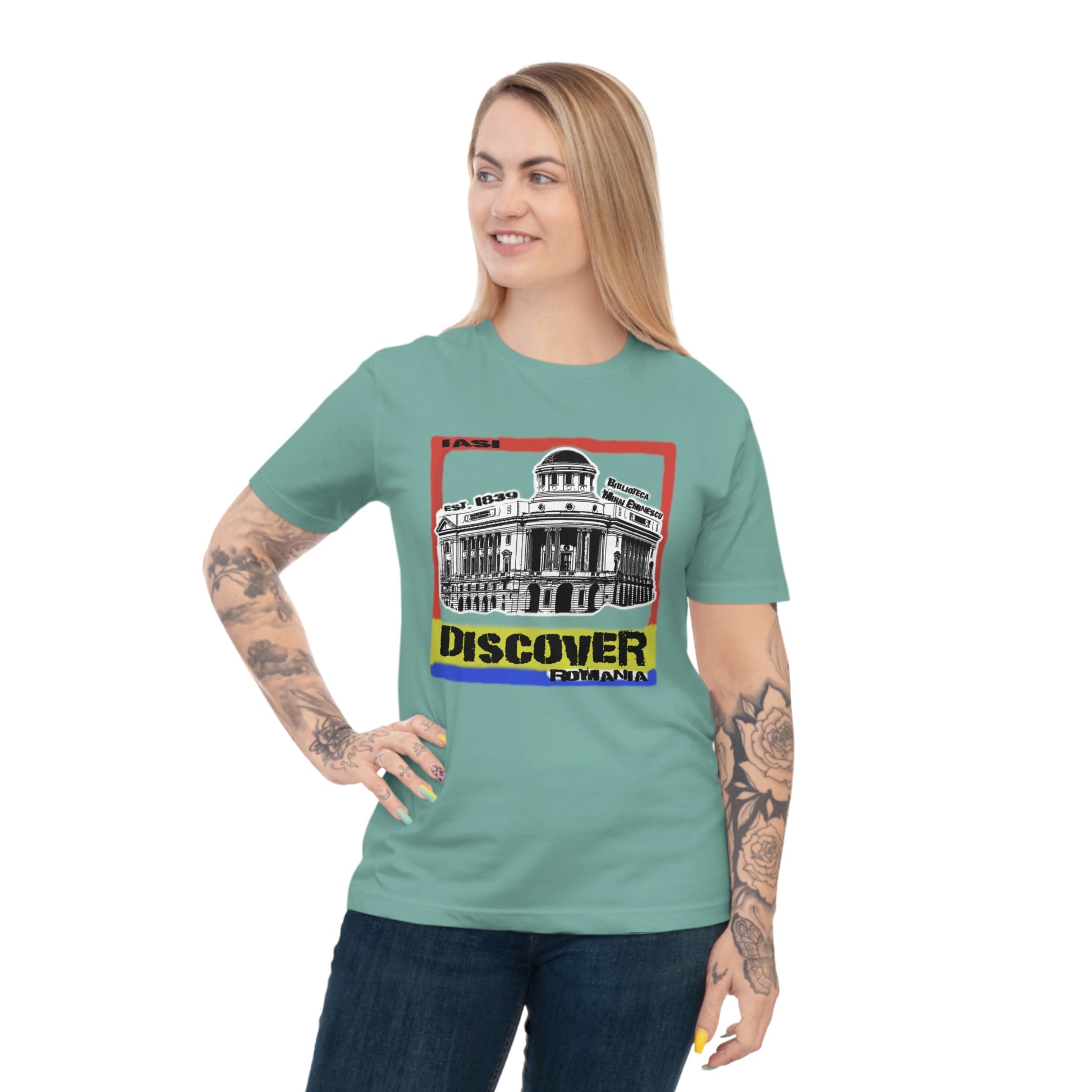 Wir stellen unser „architektonisches Juwel“ vor, das einen einzigartigen Druck aufweist, der von der atemberaubenden Architektur der Mihai-Eminescu-Bibliothek in Iasi inspiriert ist. Dieses klassische Jersey-T-Shirt aus Bio-Baumwolle höchster Qualität ist sowohl bequem als auch stylisch und perfekt für den Alltag.