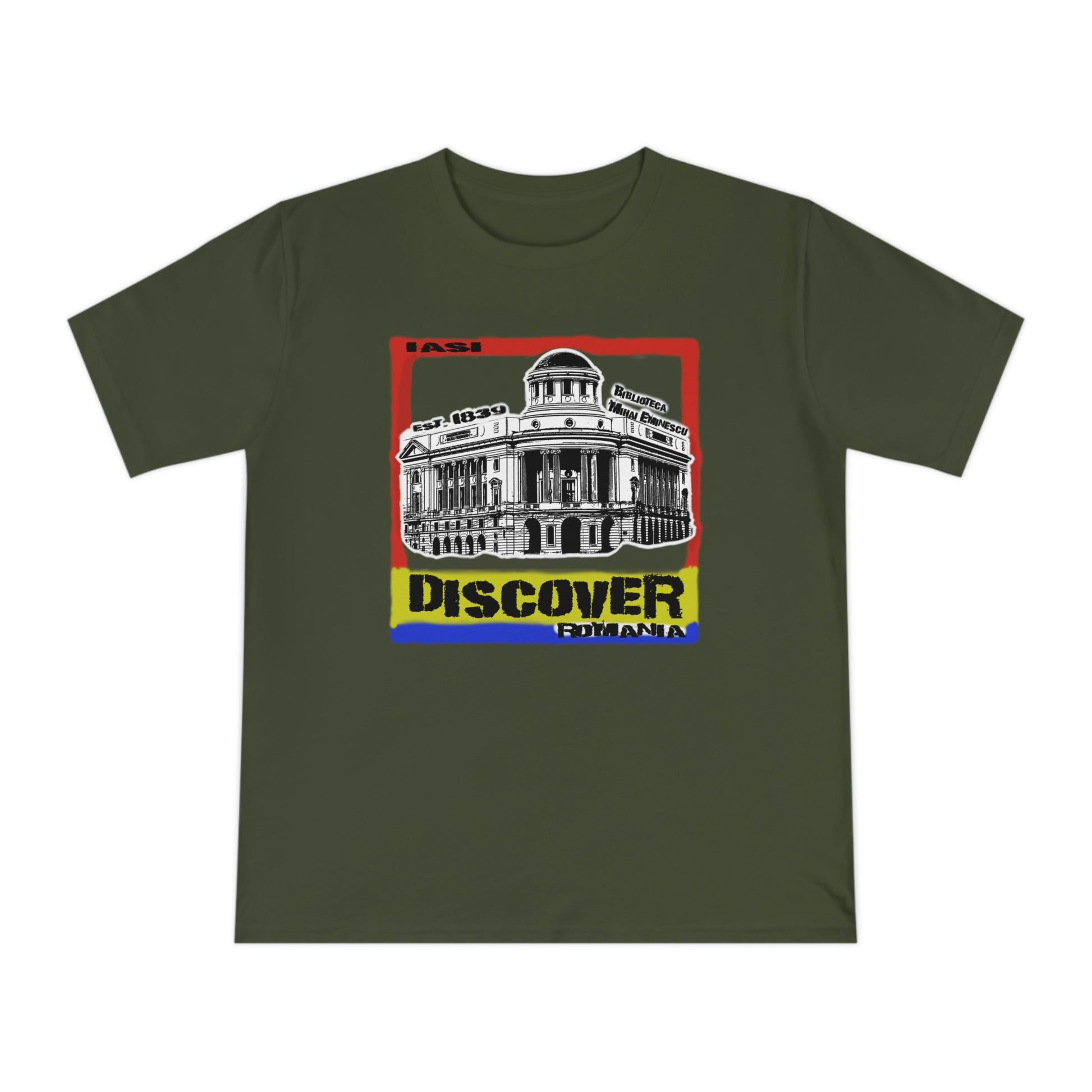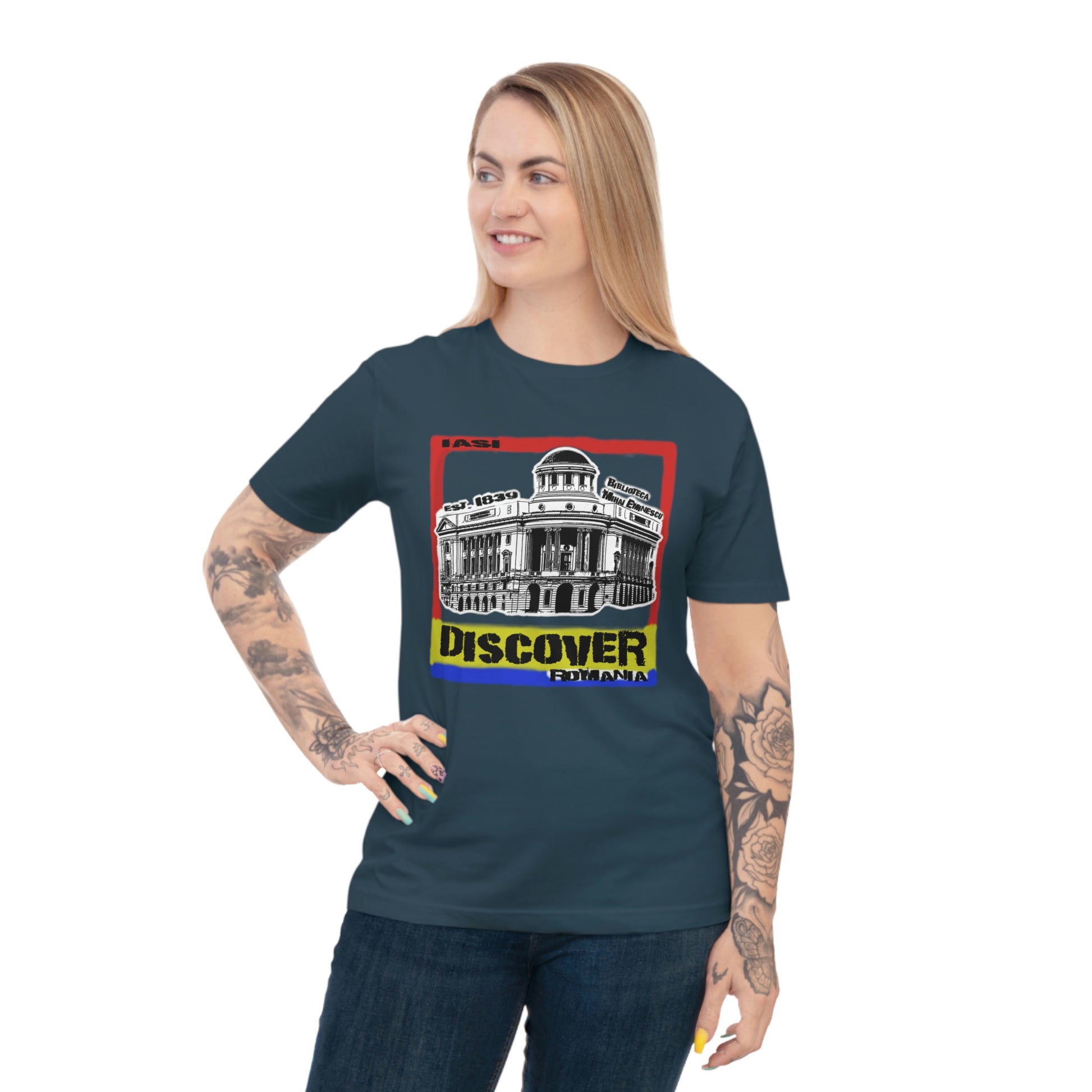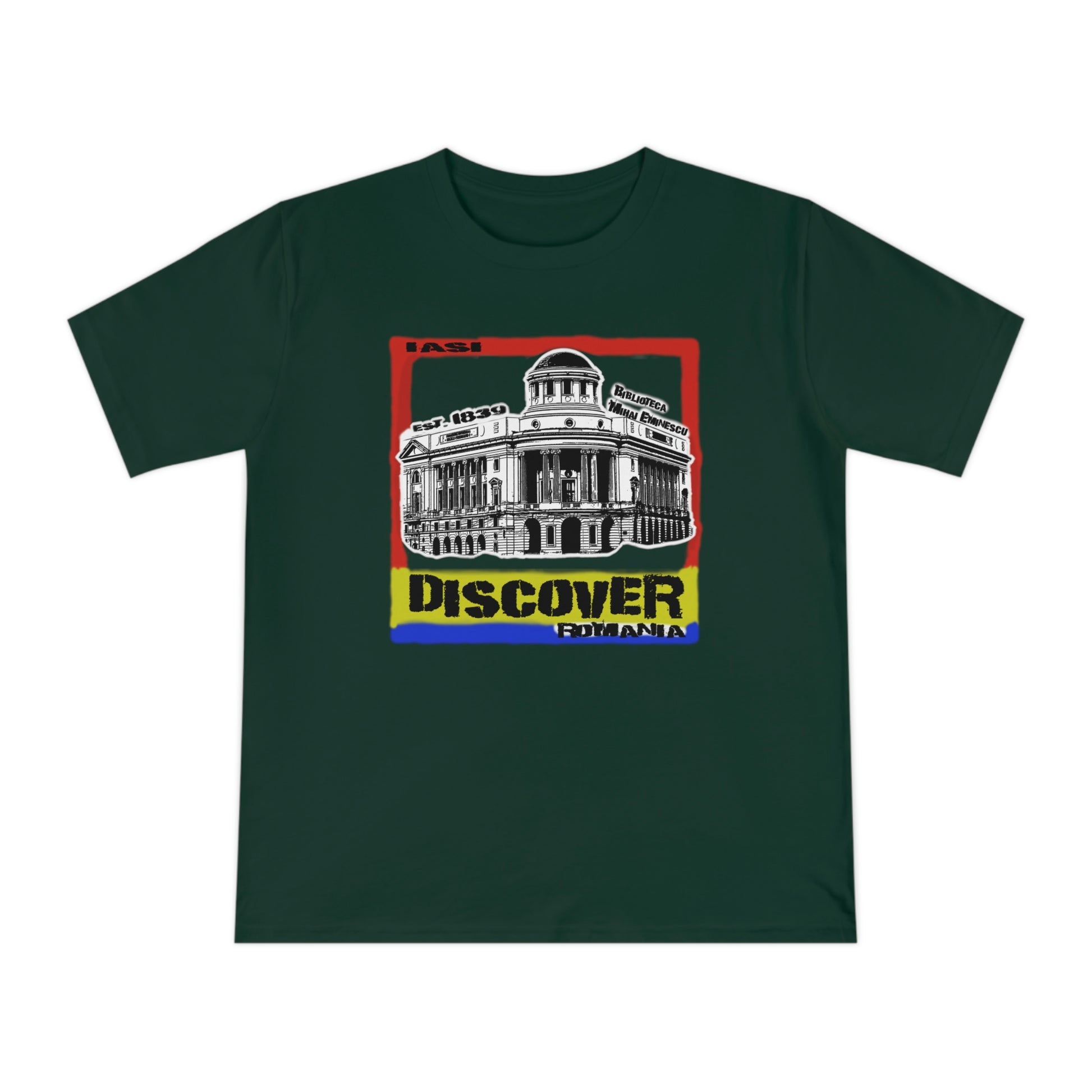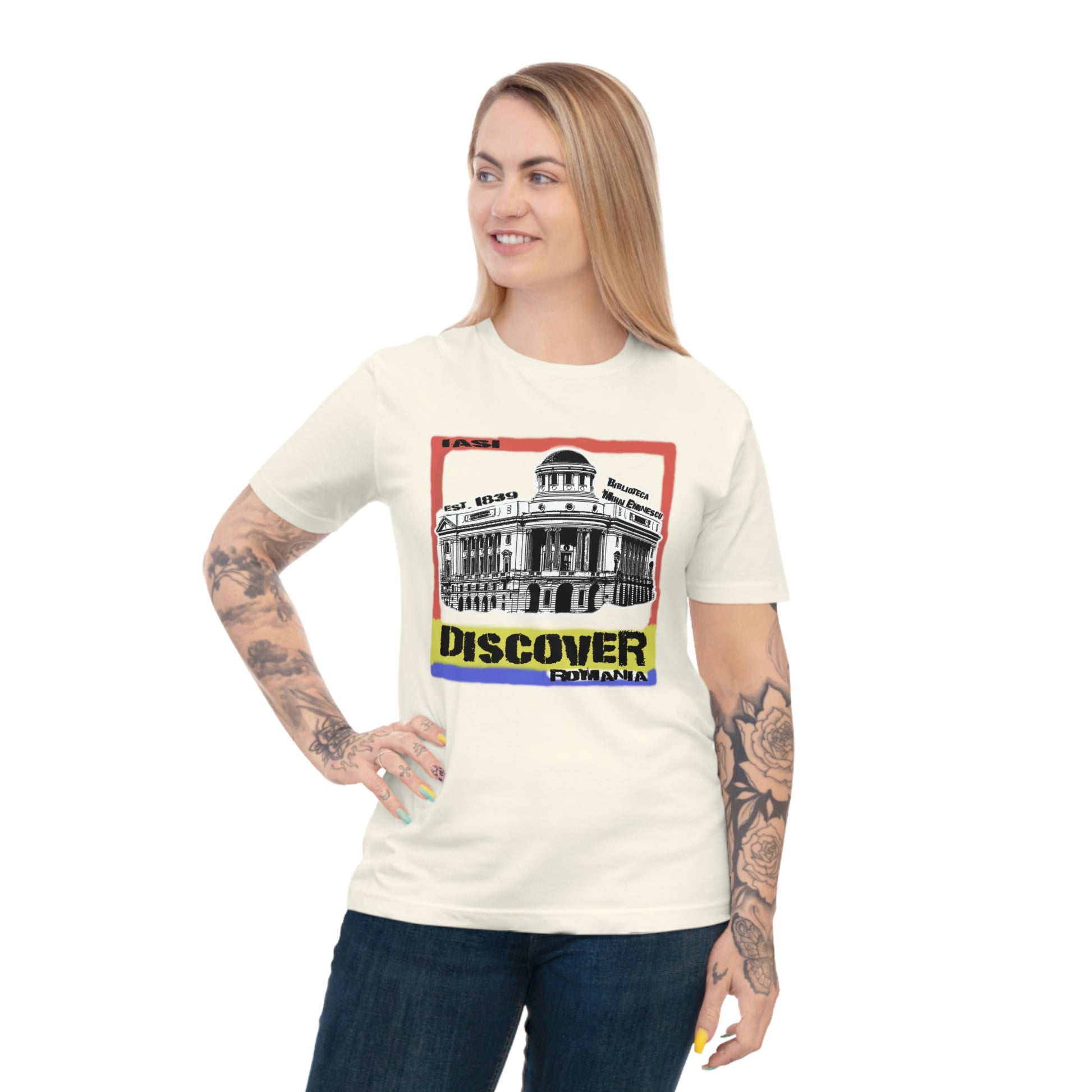 Wir stellen unser „architektonisches Juwel“ vor, das einen einzigartigen Druck aufweist, der von der atemberaubenden Architektur der Mihai-Eminescu-Bibliothek in Iasi inspiriert ist. Dieses klassische Jersey-T-Shirt aus Bio-Baumwolle höchster Qualität ist sowohl bequem als auch stylisch und perfekt für den Alltag.