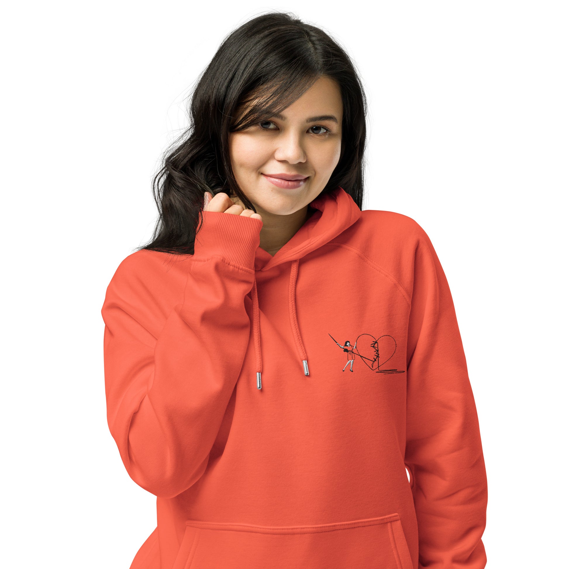 Erlebe die Schönheit der Liebe und Heilung mit unserem Mending Hearts Hoodie. Dieser atemberaubende Hoodie zeigt ein kunstvoll gesticktes Design einer Frau, die ein gebrochenes Herz wieder zusammennäht, was die Kraft der Sorgfalt und Mühe symbolisiert, selbst die am meisten zerbrochenen Stücke zu reparieren. Dieser Hoodie aus hochwertiger Bio-Baumwolle mit kuschelig gebürstetem Futter und bequemer regulärer Passform ist perfekt für jeden lässigen Anlass. Die Zugbänder mit Metallösen und Stoppern sowie die mit Jersey gefütterte Kapuze bieten zusätzlichen Schutz vor den Elementen. Der Mending Hearts Hoodie ist in zwei vielseitigen Farben, gebranntem Orange und Weiß, erhältlich und ein Must-have für deine Garderobe. Lass dich von diesem Hoodie inspirieren, dein eigenes Herz zu heilen und Liebe zu verbreiten, wohin du auch gehst.