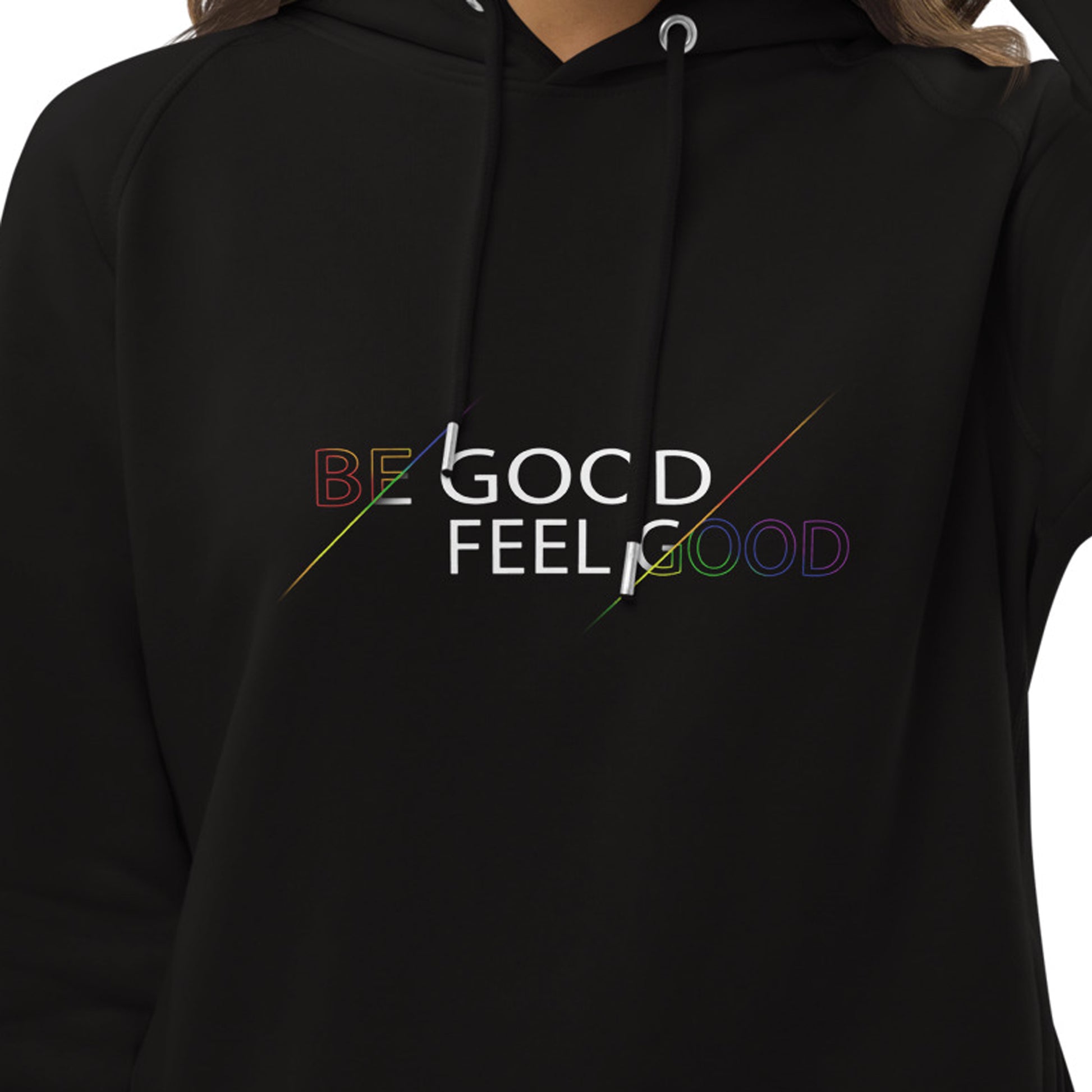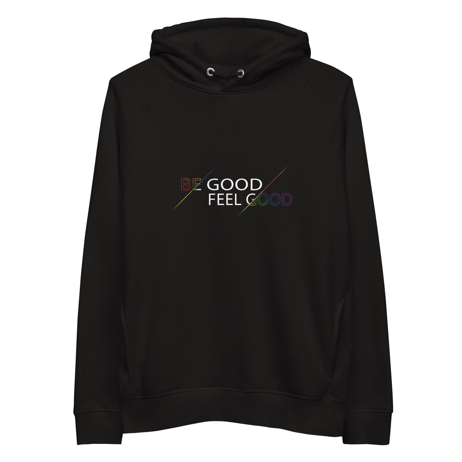 Erweitern Sie Ihren Stil mit unserem Unisex-Hoodie aus Bio-Baumwolle mit unserem kraftvollen Motto „Be Good, Feel Good“ in einem einzigartigen und faszinierenden Design. Dieser Kapuzenpullover zeigt einen sorgfältig gestalteten Druck, der unser Motto auf künstlerische und auffällige Weise zum Leben erweckt. Es besteht aus hochwertiger Bio-Baumwolle und bietet außergewöhnlichen Komfort, Wärme und Nachhaltigkeit. Heben Sie sich von der Masse ab und verbreiten Sie positive Stimmung mit dem BGFG #1 Hoodie.