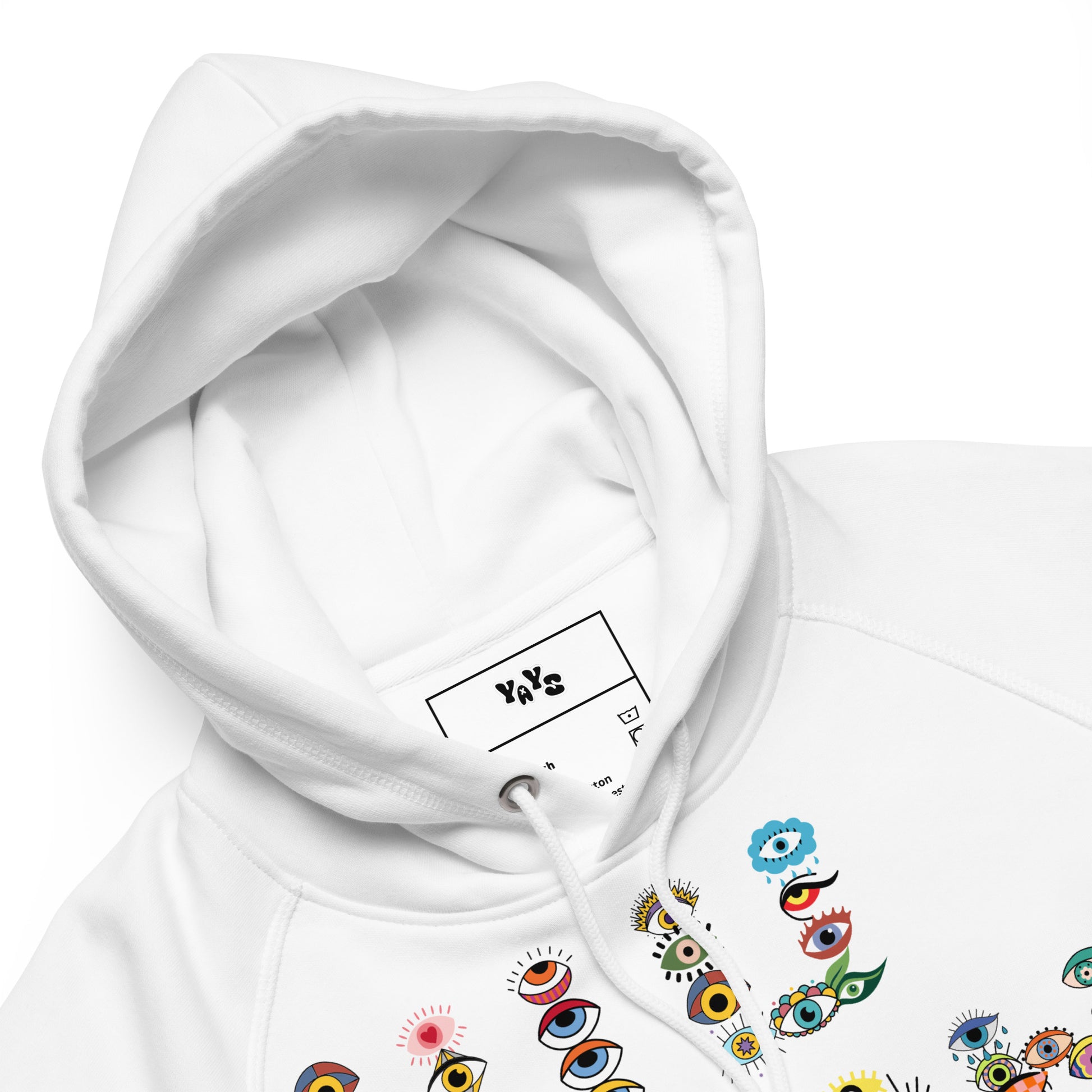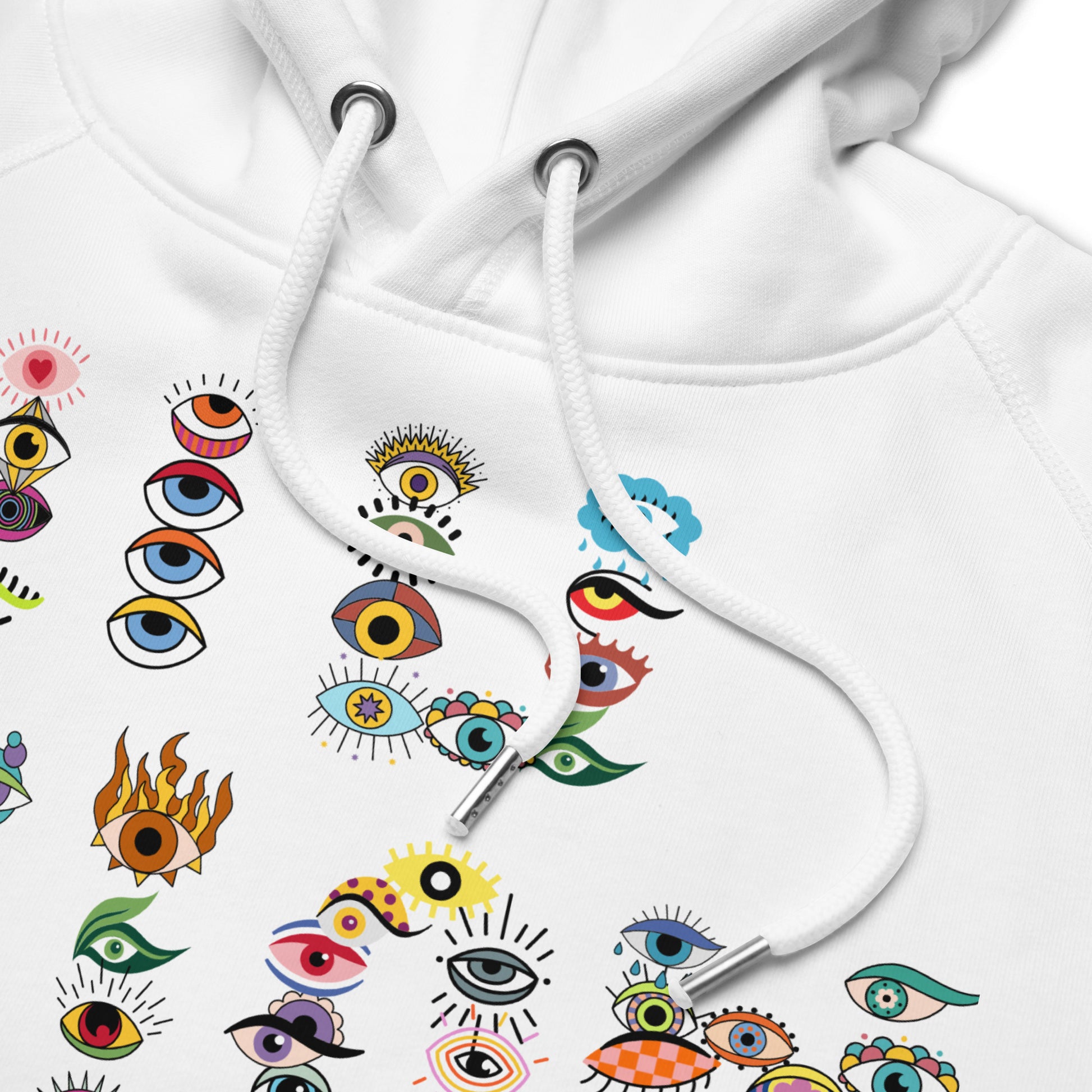 Step into a world where mystery and artistry intertwine with our enchanting "The Art of Seeing" Organic Cotton Hoodie. Prepare to embark on a whimsical journey through the depths of perception and the uncharted realms of the mind.