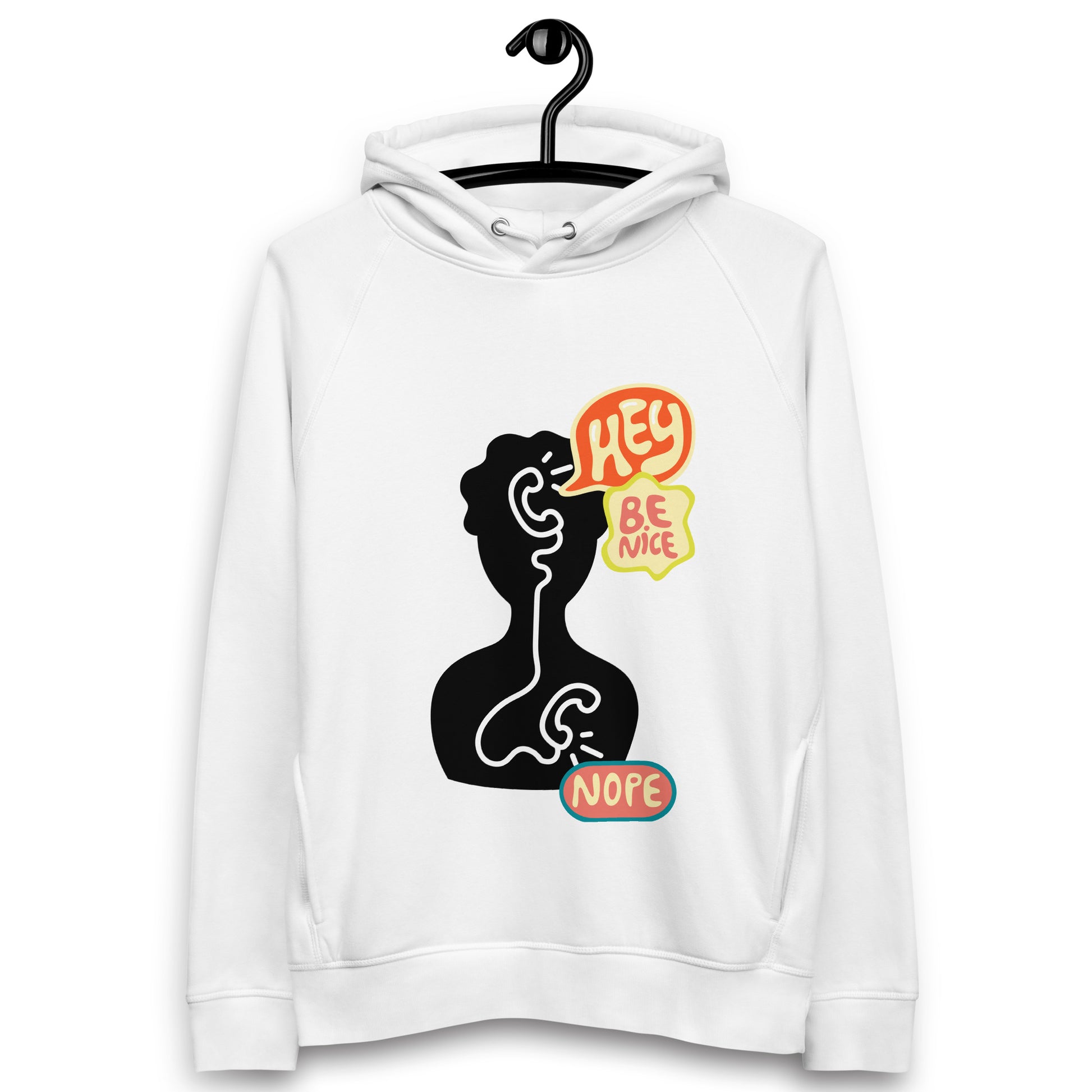 Voici notre sweat à capuche unisexe en coton biologique - Dialing Emotions, où le style rencontre l'interaction complexe entre le cœur et l'esprit. Fabriqué avec le plus grand soin et fabriqué à partir de coton biologique de première qualité, ce sweat à capuche offre à la fois confort et durabilité.