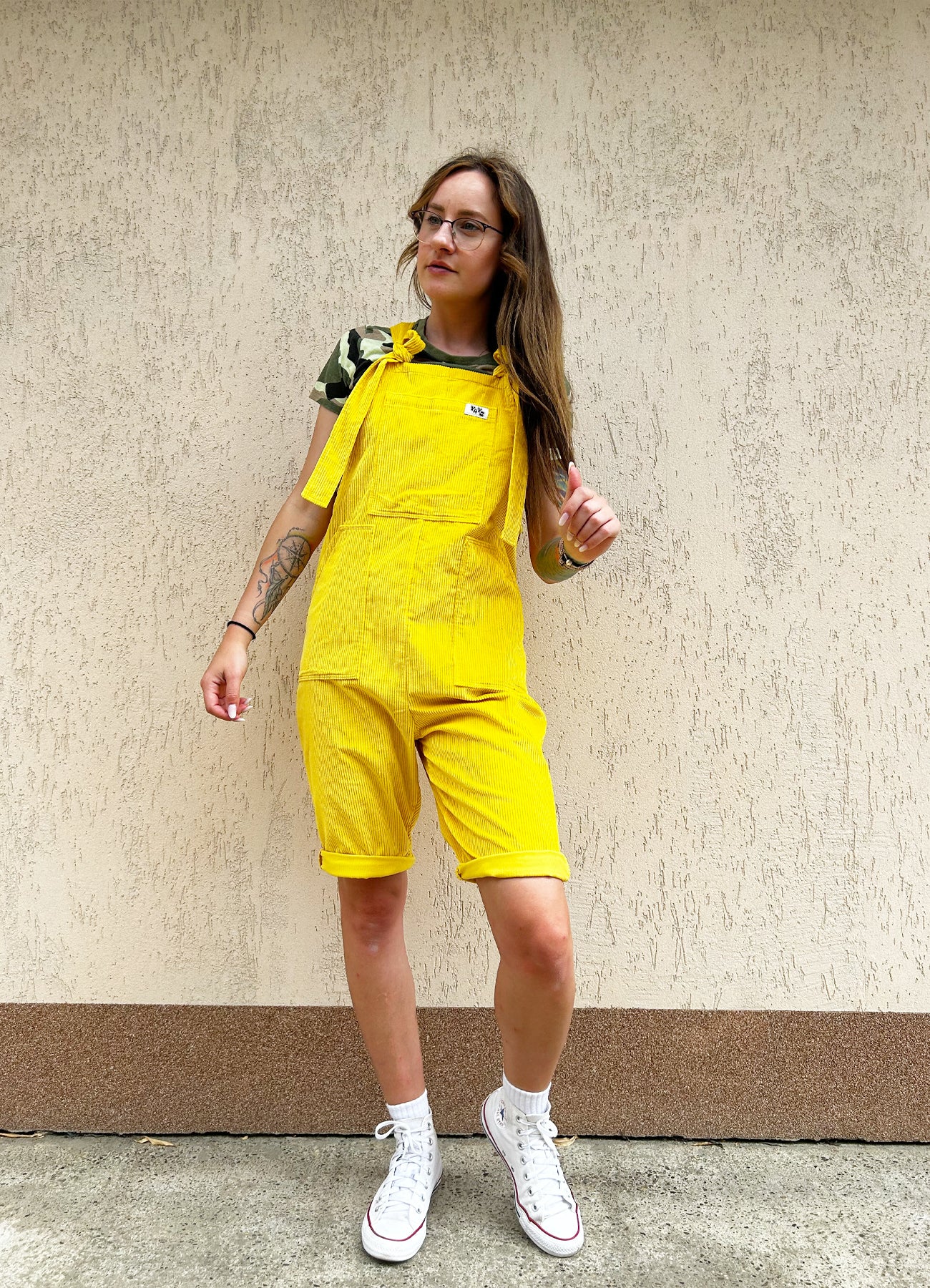 Pășește în vară cu salopetele scurte YAYS PRIMO în Sunburst Yellow! Făcute manual cu dragoste și confecționate din bumbac catifelat moale, aceste salopete unisex sunt completarea perfectă pentru garderoba ta de vreme caldă.